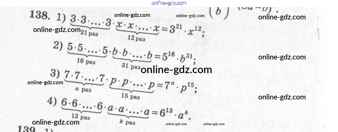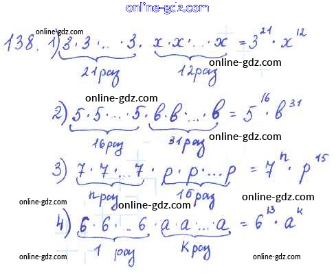 Готовые домашние задания по Алгебре за 7 класс Учебник Алимов, Колягин 2014 - §9. Степень с натуральным показателем Глава 3. Одночлены и многочлены 138