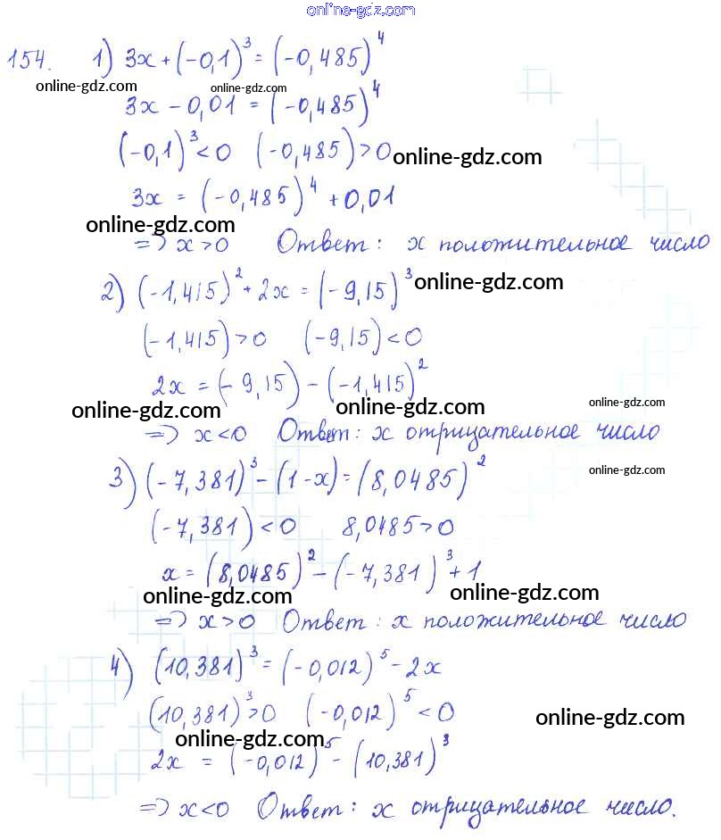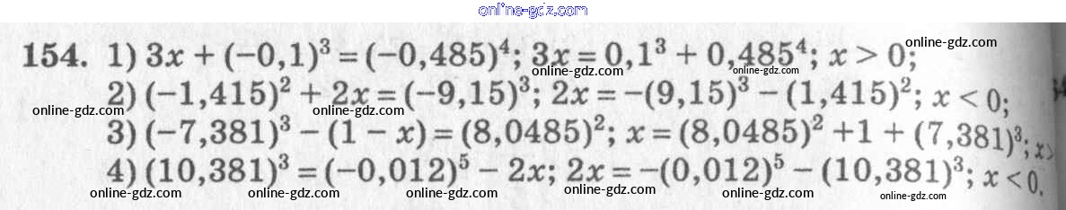 Готовые домашние задания по Алгебре за 7 класс Учебник Алимов, Колягин 2014 - §9. Степень с натуральным показателем Глава 3. Одночлены и многочлены 154