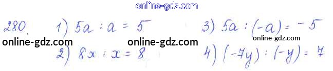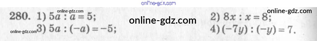 Готовые домашние задания по Алгебре за 7 класс Учебник Алимов, Колягин 2014 - §18. Деление одночлена и многочлена на одночлен Глава 3. Одночлены и многочлены 280