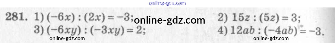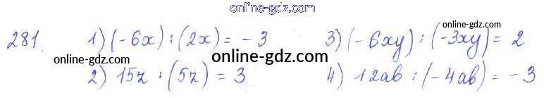 Готовые домашние задания по Алгебре за 7 класс Учебник Алимов, Колягин 2014 - §18. Деление одночлена и многочлена на одночлен Глава 3. Одночлены и многочлены 281