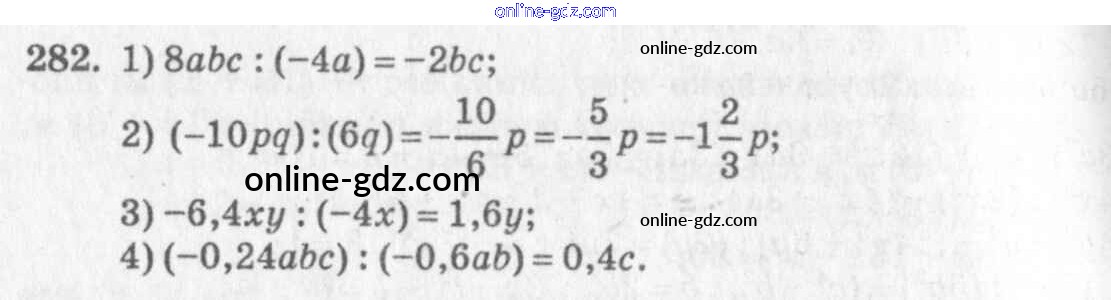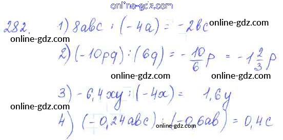 Готовые домашние задания по Алгебре за 7 класс Учебник Алимов, Колягин 2014 - §18. Деление одночлена и многочлена на одночлен Глава 3. Одночлены и многочлены 282