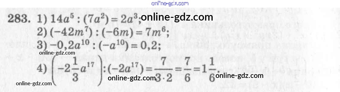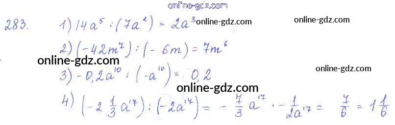 Готовые домашние задания по Алгебре за 7 класс Учебник Алимов, Колягин 2014 - §18. Деление одночлена и многочлена на одночлен Глава 3. Одночлены и многочлены 283