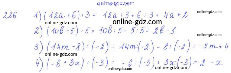Готовые домашние задания по Алгебре за 7 класс Учебник Алимов, Колягин 2014 - §18. Деление одночлена и многочлена на одночлен Глава 3. Одночлены и многочлены 286
