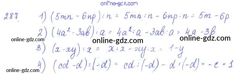 Готовые домашние задания по Алгебре за 7 класс Учебник Алимов, Колягин 2014 - §18. Деление одночлена и многочлена на одночлен Глава 3. Одночлены и многочлены 287