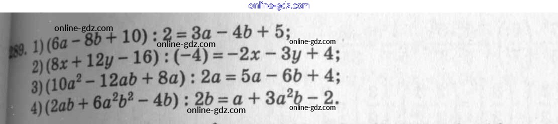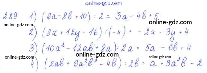 Готовые домашние задания по Алгебре за 7 класс Учебник Алимов, Колягин 2014 - §18. Деление одночлена и многочлена на одночлен Глава 3. Одночлены и многочлены 289