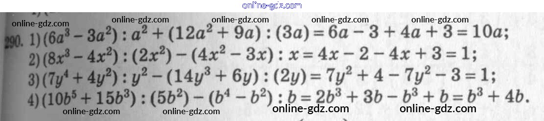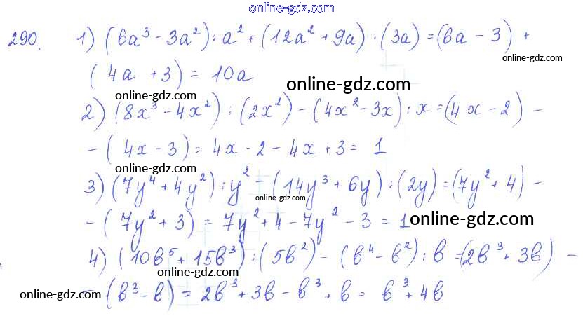 Готовые домашние задания по Алгебре за 7 класс Учебник Алимов, Колягин 2014 - §18. Деление одночлена и многочлена на одночлен Глава 3. Одночлены и многочлены 290