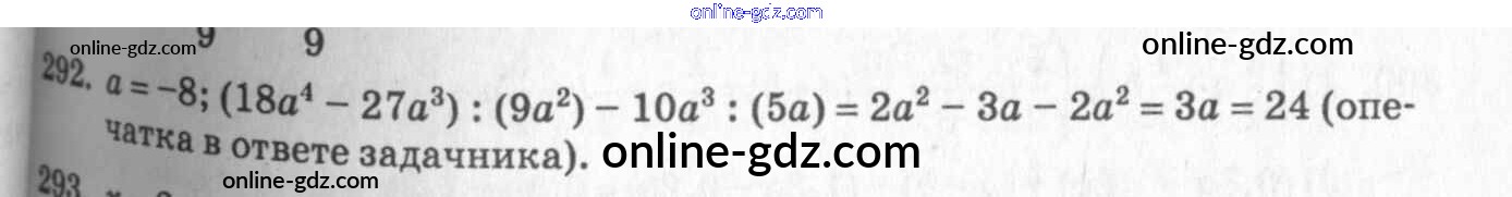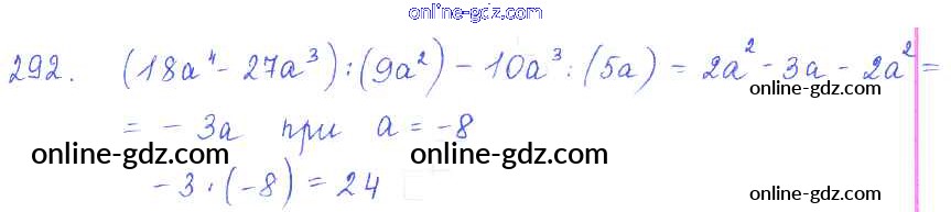 Готовые домашние задания по Алгебре за 7 класс Учебник Алимов, Колягин 2014 - §18. Деление одночлена и многочлена на одночлен Глава 3. Одночлены и многочлены 292