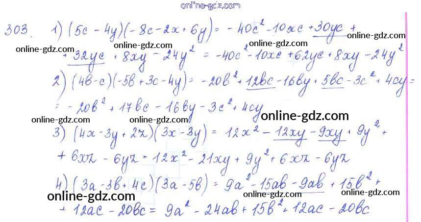 Готовые домашние задания по Алгебре за 7 класс Учебник Алимов, Колягин 2014 - Упражнения к главе 3 Глава 3. Одночлены и многочлены 303