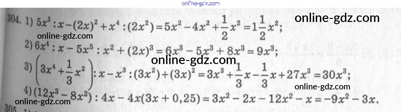 Готовые домашние задания по Алгебре за 7 класс Учебник Алимов, Колягин 2014 - Упражнения к главе 3 Глава 3. Одночлены и многочлены 304
