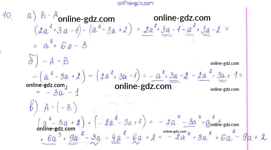 Готовые домашние задания по Алгебре за 7 класс Учебник Алимов, Колягин 2014 - Проверь себя Глава 3. Одночлены и многочлены 10