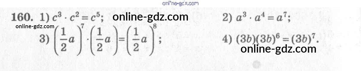 Готовые домашние задания по Алгебре за 7 класс Учебник Алимов, Колягин 2014 - §10. Свойства степени с натуральным показателем Глава 3. Одночлены и многочлены 160