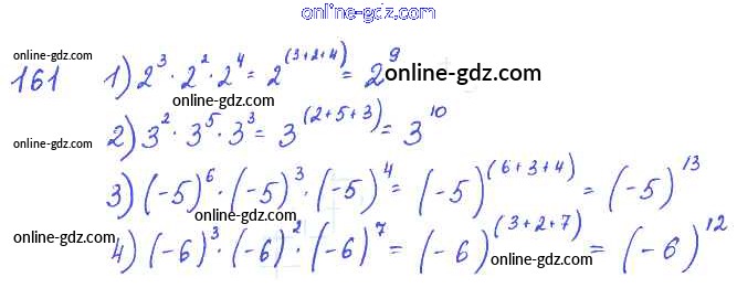 Готовые домашние задания по Алгебре за 7 класс Учебник Алимов, Колягин 2014 - §10. Свойства степени с натуральным показателем Глава 3. Одночлены и многочлены 161