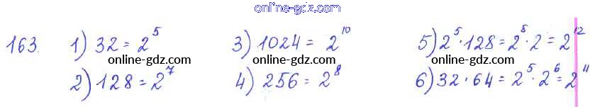 Готовые домашние задания по Алгебре за 7 класс Учебник Алимов, Колягин 2014 - §10. Свойства степени с натуральным показателем Глава 3. Одночлены и многочлены 163