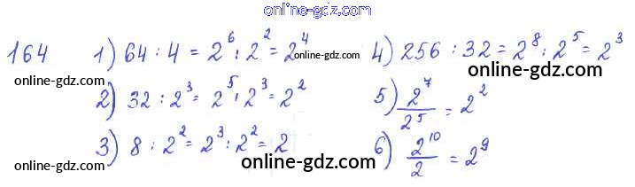 Готовые домашние задания по Алгебре за 7 класс Учебник Алимов, Колягин 2014 - §10. Свойства степени с натуральным показателем Глава 3. Одночлены и многочлены 164