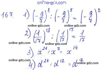 Готовые домашние задания по Алгебре за 7 класс Учебник Алимов, Колягин 2014 - §10. Свойства степени с натуральным показателем Глава 3. Одночлены и многочлены 167