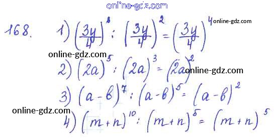 Готовые домашние задания по Алгебре за 7 класс Учебник Алимов, Колягин 2014 - §10. Свойства степени с натуральным показателем Глава 3. Одночлены и многочлены 168