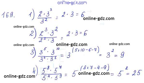 Готовые домашние задания по Алгебре за 7 класс Учебник Алимов, Колягин 2014 - §10. Свойства степени с натуральным показателем Глава 3. Одночлены и многочлены 169