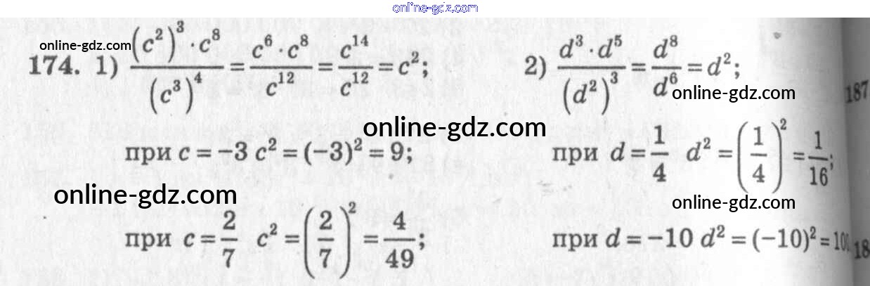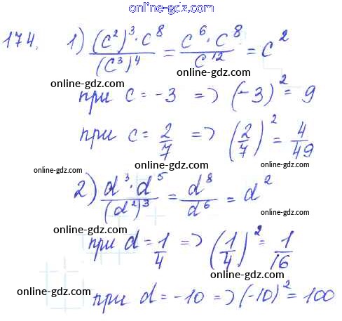 Готовые домашние задания по Алгебре за 7 класс Учебник Алимов, Колягин 2014 - §10. Свойства степени с натуральным показателем Глава 3. Одночлены и многочлены 174