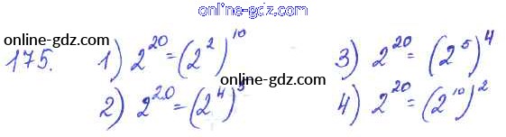 Готовые домашние задания по Алгебре за 7 класс Учебник Алимов, Колягин 2014 - §10. Свойства степени с натуральным показателем Глава 3. Одночлены и многочлены 175
