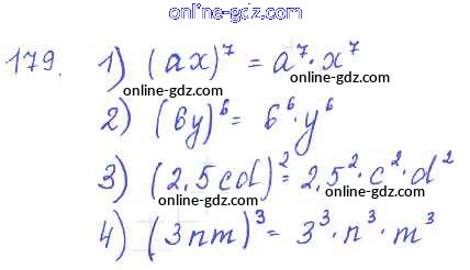Готовые домашние задания по Алгебре за 7 класс Учебник Алимов, Колягин 2014 - §10. Свойства степени с натуральным показателем Глава 3. Одночлены и многочлены 179