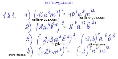Готовые домашние задания по Алгебре за 7 класс Учебник Алимов, Колягин 2014 - §10. Свойства степени с натуральным показателем Глава 3. Одночлены и многочлены 181