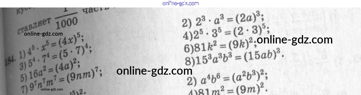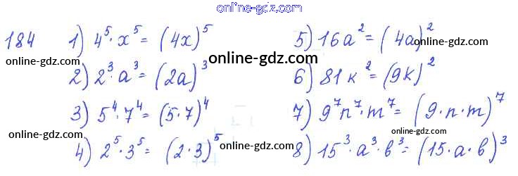 Готовые домашние задания по Алгебре за 7 класс Учебник Алимов, Колягин 2014 - §10. Свойства степени с натуральным показателем Глава 3. Одночлены и многочлены 184