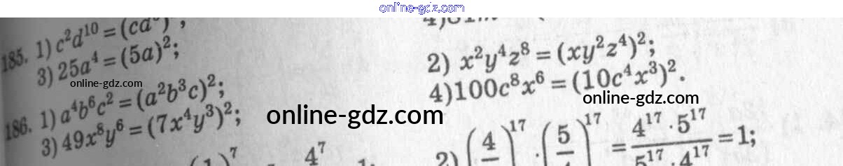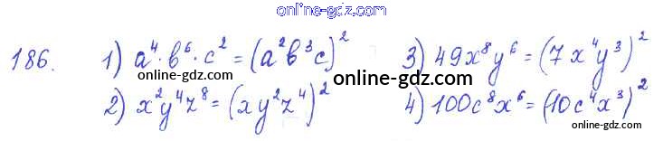 Готовые домашние задания по Алгебре за 7 класс Учебник Алимов, Колягин 2014 - §10. Свойства степени с натуральным показателем Глава 3. Одночлены и многочлены 186