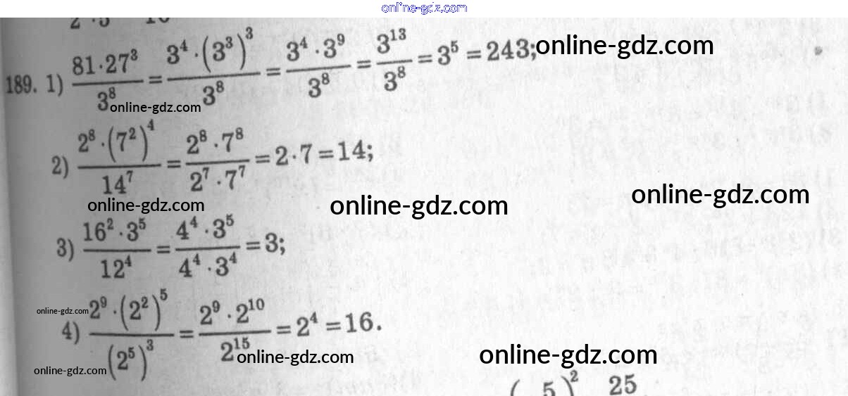 Готовые домашние задания по Алгебре за 7 класс Учебник Алимов, Колягин 2014 - §10. Свойства степени с натуральным показателем Глава 3. Одночлены и многочлены 189