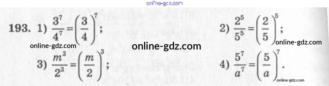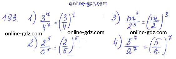 Готовые домашние задания по Алгебре за 7 класс Учебник Алимов, Колягин 2014 - §10. Свойства степени с натуральным показателем Глава 3. Одночлены и многочлены 193