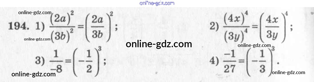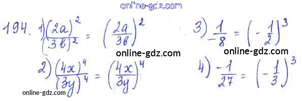Готовые домашние задания по Алгебре за 7 класс Учебник Алимов, Колягин 2014 - §10. Свойства степени с натуральным показателем Глава 3. Одночлены и многочлены 194