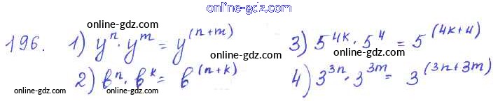 Готовые домашние задания по Алгебре за 7 класс Учебник Алимов, Колягин 2014 - §10. Свойства степени с натуральным показателем Глава 3. Одночлены и многочлены 196
