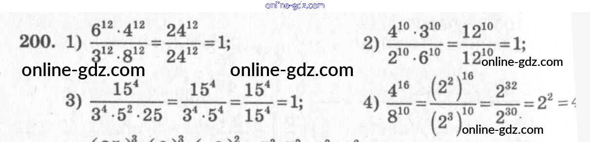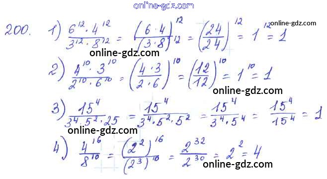 Готовые домашние задания по Алгебре за 7 класс Учебник Алимов, Колягин 2014 - §10. Свойства степени с натуральным показателем Глава 3. Одночлены и многочлены 200