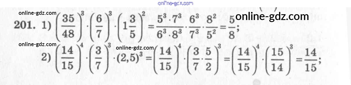 Готовые домашние задания по Алгебре за 7 класс Учебник Алимов, Колягин 2014 - §10. Свойства степени с натуральным показателем Глава 3. Одночлены и многочлены 201
