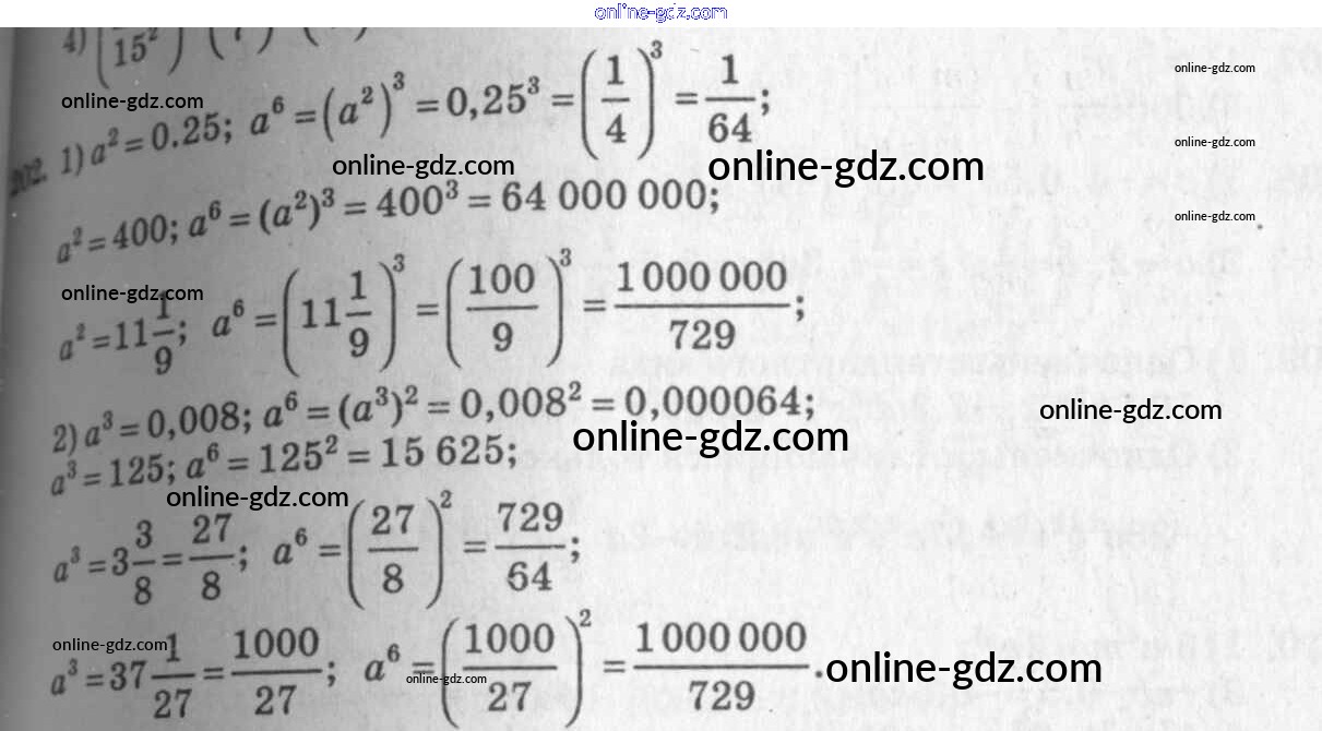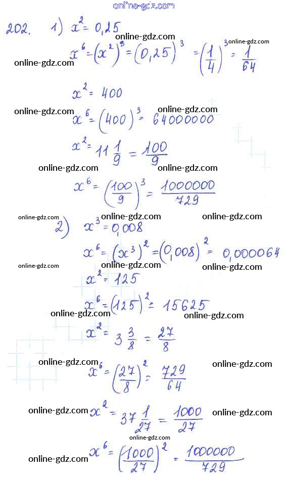 Готовые домашние задания по Алгебре за 7 класс Учебник Алимов, Колягин 2014 - §10. Свойства степени с натуральным показателем Глава 3. Одночлены и многочлены 202