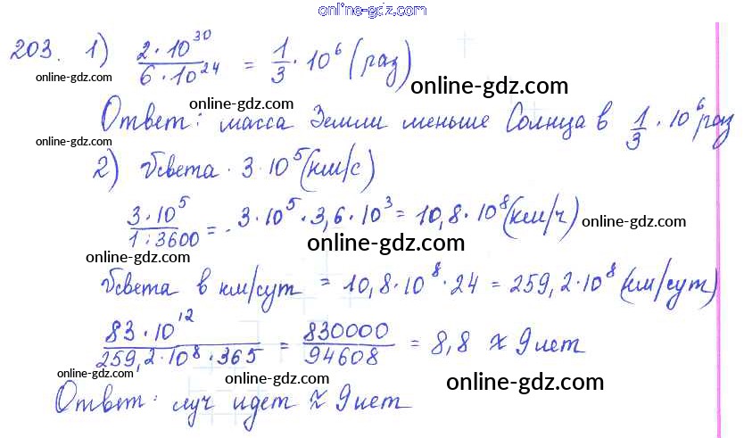 Готовые домашние задания по Алгебре за 7 класс Учебник Алимов, Колягин 2014 - §10. Свойства степени с натуральным показателем Глава 3. Одночлены и многочлены 203