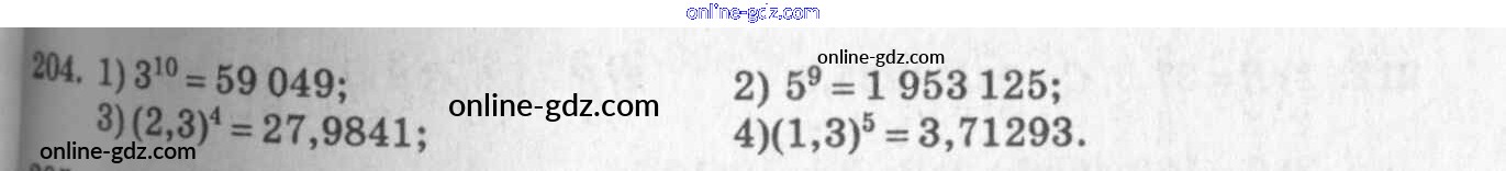 Готовые домашние задания по Алгебре за 7 класс Учебник Алимов, Колягин 2014 - §10. Свойства степени с натуральным показателем Глава 3. Одночлены и многочлены 204