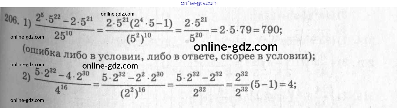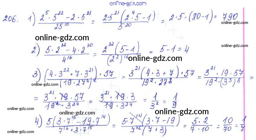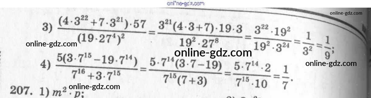 Готовые домашние задания по Алгебре за 7 класс Учебник Алимов, Колягин 2014 - §10. Свойства степени с натуральным показателем Глава 3. Одночлены и многочлены 206