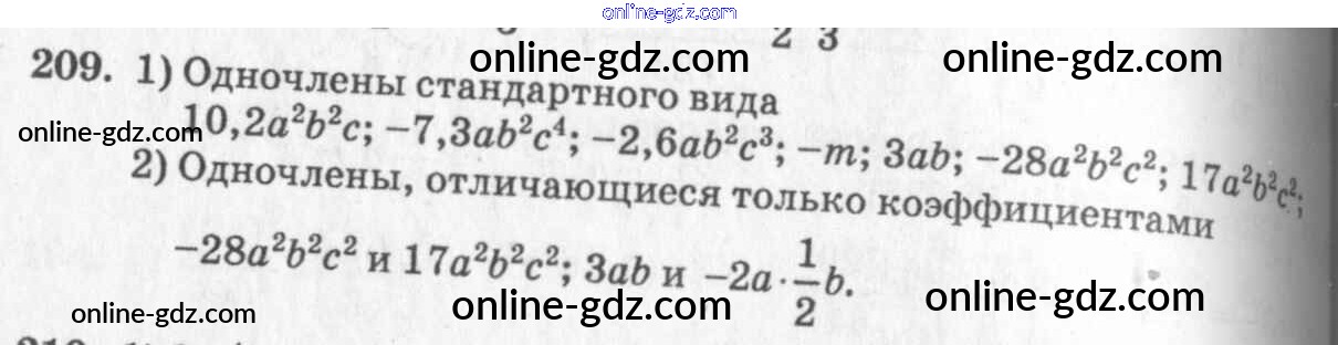 Готовые домашние задания по Алгебре за 7 класс Учебник Алимов, Колягин 2014 - §11. Одночлен. Стандартный вид одночлена Глава 3. Одночлены и многочлены 209