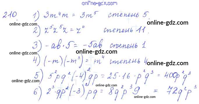 Готовые домашние задания по Алгебре за 7 класс Учебник Алимов, Колягин 2014 - §11. Одночлен. Стандартный вид одночлена Глава 3. Одночлены и многочлены 210