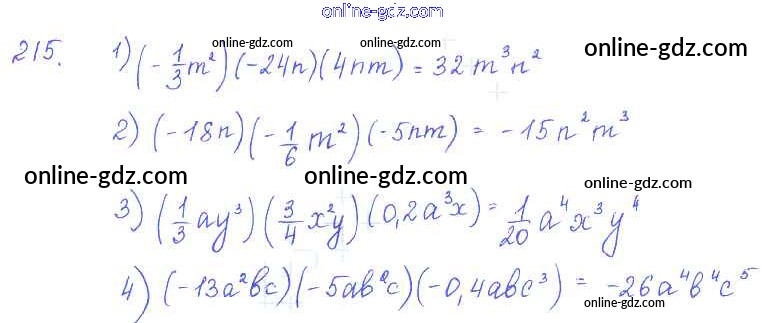 Готовые домашние задания по Алгебре за 7 класс Учебник Алимов, Колягин 2014 - §12. Умножение одночленов Глава 3. Одночлены и многочлены 215