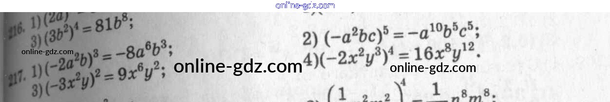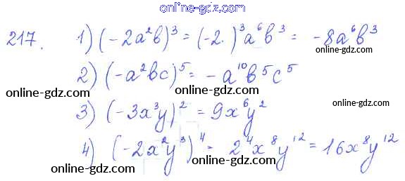 Готовые домашние задания по Алгебре за 7 класс Учебник Алимов, Колягин 2014 - §12. Умножение одночленов Глава 3. Одночлены и многочлены 217