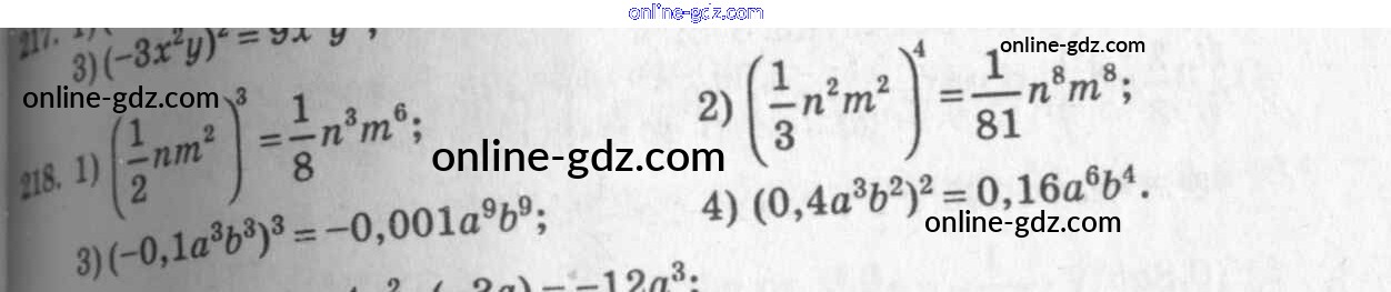 Готовые домашние задания по Алгебре за 7 класс Учебник Алимов, Колягин 2014 - §12. Умножение одночленов Глава 3. Одночлены и многочлены 218