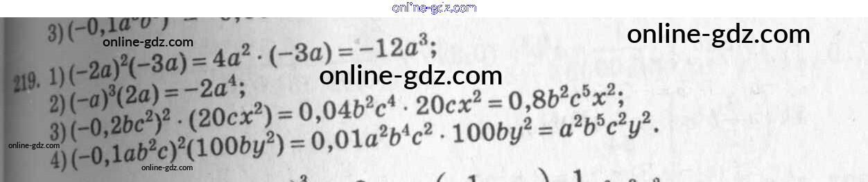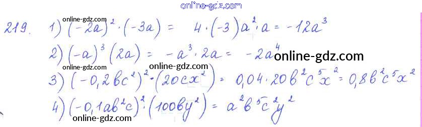 Готовые домашние задания по Алгебре за 7 класс Учебник Алимов, Колягин 2014 - §12. Умножение одночленов Глава 3. Одночлены и многочлены 219