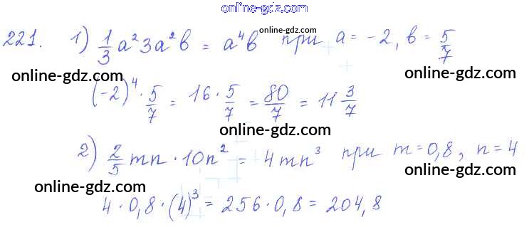 Готовые домашние задания по Алгебре за 7 класс Учебник Алимов, Колягин 2014 - §12. Умножение одночленов Глава 3. Одночлены и многочлены 221