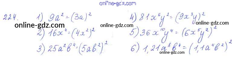 Готовые домашние задания по Алгебре за 7 класс Учебник Алимов, Колягин 2014 - §12. Умножение одночленов Глава 3. Одночлены и многочлены 224