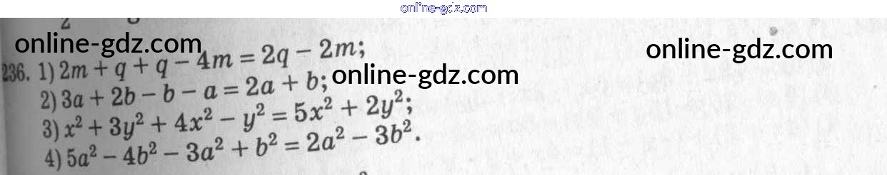 Готовые домашние задания по Алгебре за 7 класс Учебник Алимов, Колягин 2014 - §14. Приведение подобных членов Глава 3. Одночлены и многочлены 236