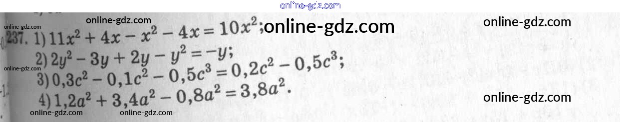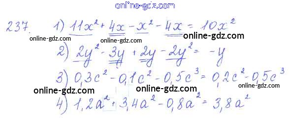 Готовые домашние задания по Алгебре за 7 класс Учебник Алимов, Колягин 2014 - §14. Приведение подобных членов Глава 3. Одночлены и многочлены 237