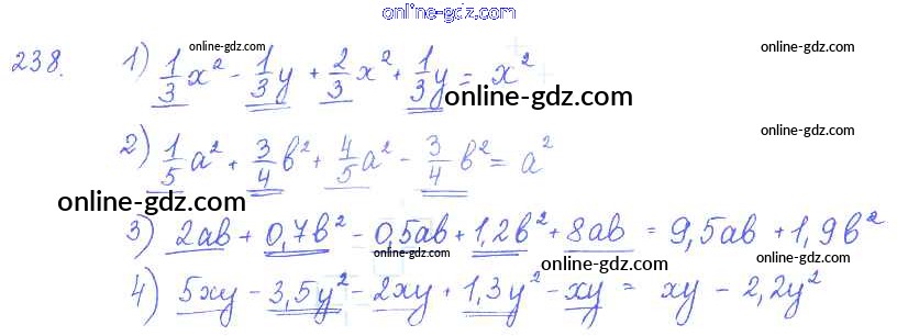 Готовые домашние задания по Алгебре за 7 класс Учебник Алимов, Колягин 2014 - §14. Приведение подобных членов Глава 3. Одночлены и многочлены 238