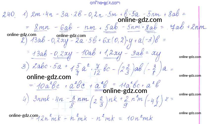 Готовые домашние задания по Алгебре за 7 класс Учебник Алимов, Колягин 2014 - §14. Приведение подобных членов Глава 3. Одночлены и многочлены 240