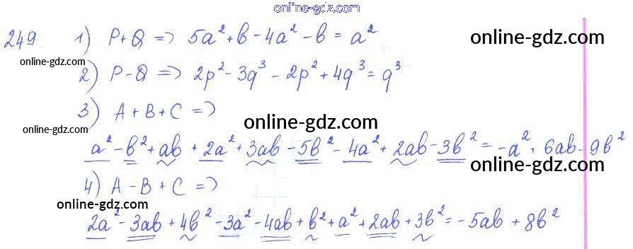 Готовые домашние задания по Алгебре за 7 класс Учебник Алимов, Колягин 2014 - §15. Сложение и вычитание многочленов Глава 3. Одночлены и многочлены 249